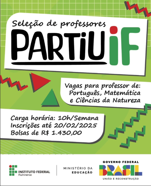 O Instituto Federal Fluminense (IFF), em parceria com a Setec/MEC e a Secadi/MEC, abrirá 13 turmas do Programa Partiu IF, uma iniciativa para promover a igualdade de oportunidades no acesso à Rede Federal de Educação Profissional, Científica e Tecnológica. Oportunidade para professores O IFF abrirá vagas para docentes nas disciplinas de Português, Matemática e Ciências […]