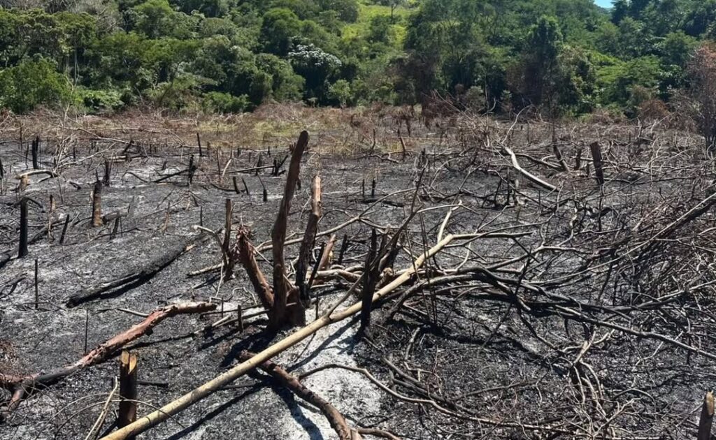 Área de proteção é desmatada e queimada em São Fidélis RJ