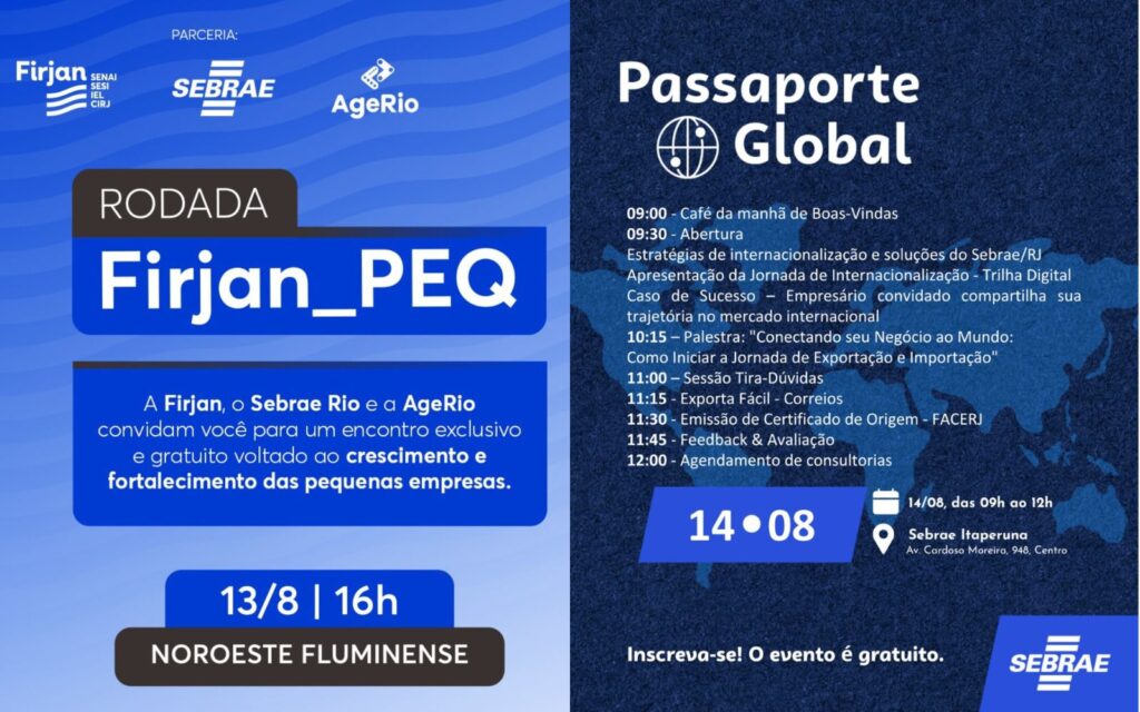 Itaperuna, RJ – Empreendedores do Noroeste Fluminense terão dois dias de consultoria gratuita com o Sebrae Rio para impulsionar seus negócios. As iniciativas, que acontecerão nos dias 13 e 14 de agosto, em Itaperuna, abordarão temas como vendas para o governo, crédito e comércio exterior. Vendas para o governo e inovação Nesta quarta-feira (13), o […]
