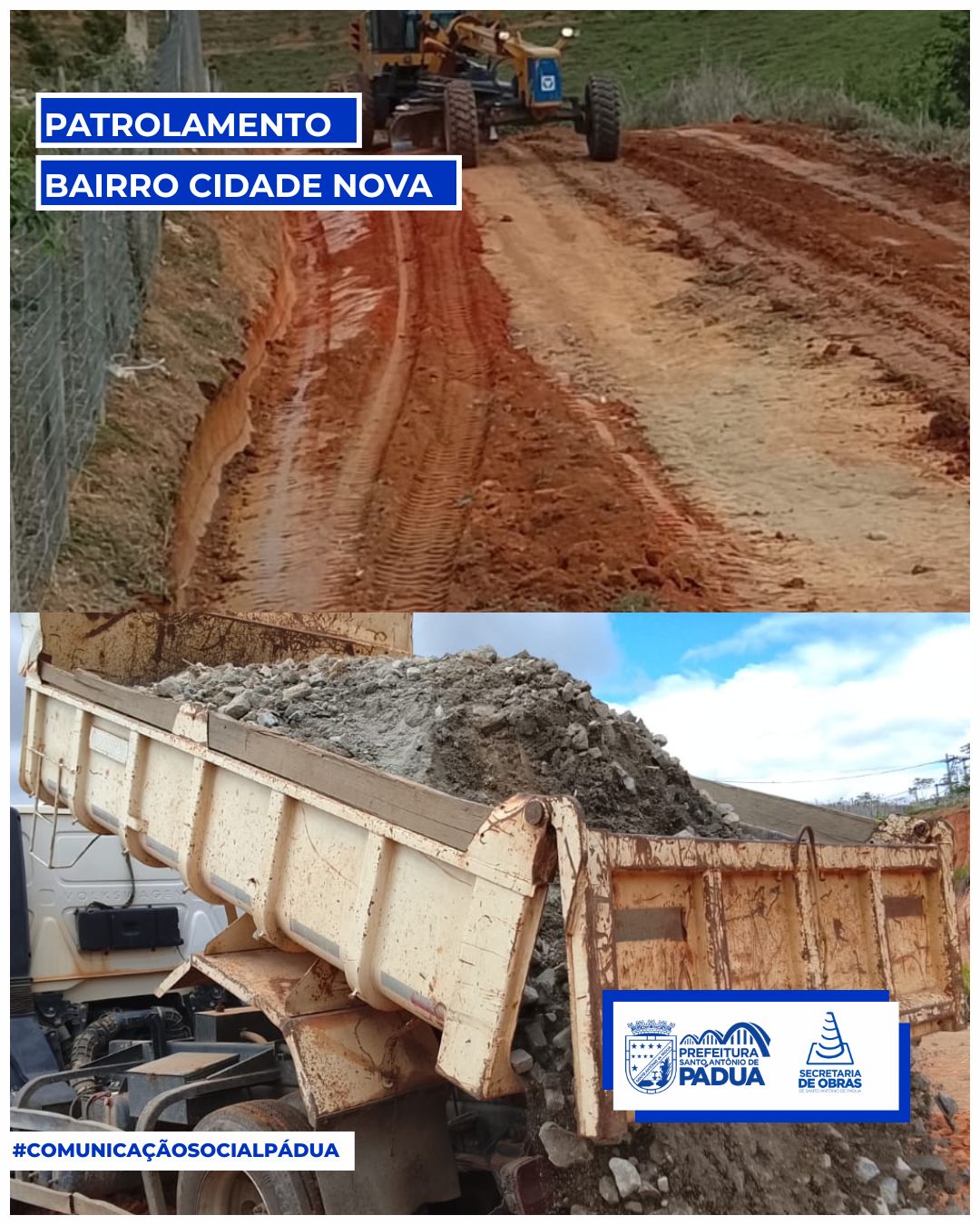 A Secretaria de Obras está trabalhando intensamente no bairro Cidade Nova, onde realiza serviços de patrolamento nas ruas. O trabalho busca melhorar a condição das vias, especialmente como parte das ações preventivas para o período chuvoso.