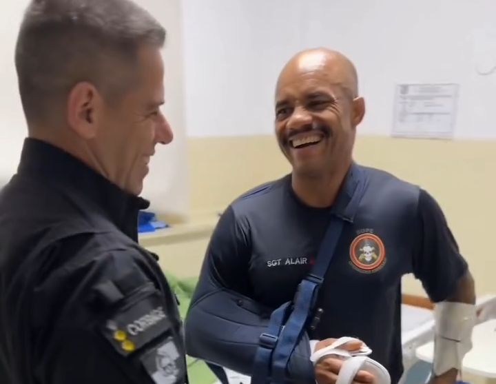 O sargento da Polícia Militar Alair, atingido por um disparo de fuzil no ombro em 28 de outubro, recebeu alta hospitalar. O caso, inicialmente classificado como lesão de baixo risco, evoluiu para um quadro gravíssimo devido ao projétil ter atingido uma artéria vital, causando uma hemorragia severa.