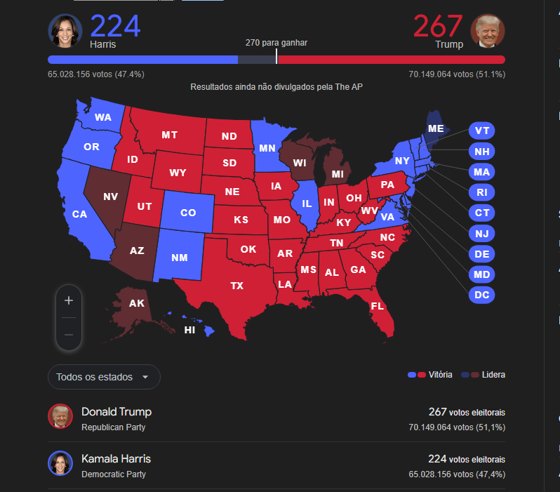 Eleições nos EUA Donald Trump está muito próximo de vencer a disputa contra Kamala Harris e voltar à Casa Branca. Mesmo antes de dados oficiais e projeções da imprensa, a situação está tão próxima da definição que vários chefes de Estado já parabenizam Trump pela vitória (veja quais abaixo) Donald Trump venceu a disputa nos […]
