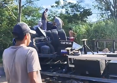 Na tarde desta terça-feira (8), um acidente interrompeu o fluxo na Estrada União e Indústria, próximo ao bairro Santa Rosa, em Três Rios, RJ. Uma carreta tombou, espalhando sua carga pelas margens da via.