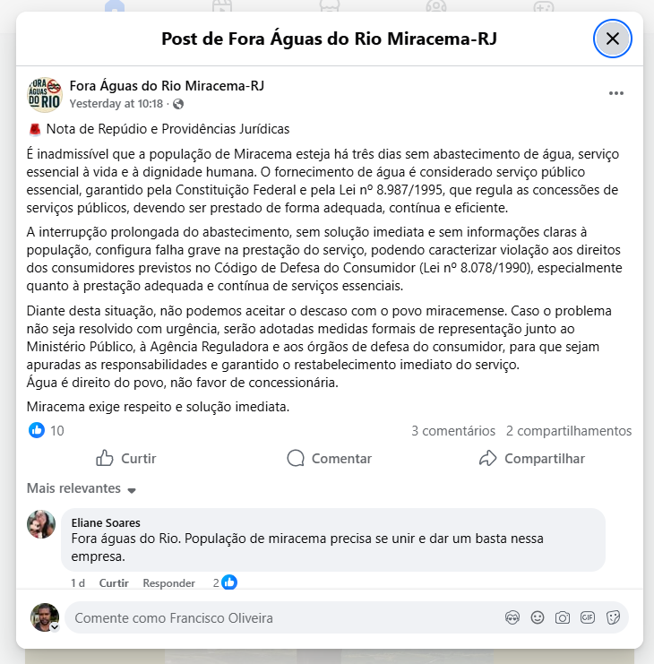A insatisfação com o serviço de fornecimento de água em Itaperuna atingiu um novo patamar nesta semana. Moradores do município iniciaram uma mobilização digital, por