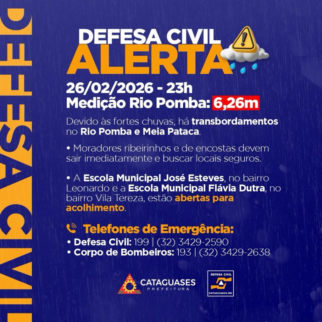 A situação hidrológica em Cataguases atingiu um patamar extremamente preocupante na manhã desta sexta-feira (27). De acordo com a medição oficial realizada pela Defesa Civil