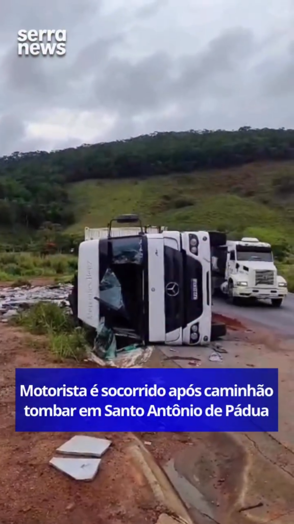 Um motorista sofreu ferimentos leves após o caminhão que conduzia tombar na manhã desta quarta-feira (3), na rodovia RJ-186, em Santo Antônio de Pádua. O