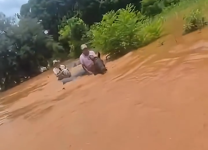 As fortes chuvas que atingiram as regiões do Noroeste fluminense nos últimos dias causaram grandes estragos e isolaram diversas localidades, especialmente em áreas rurais. Nos municípios de Itaocara e São Sebastião do Alto, a situação das estradas vicinais tornou-se crítica, com acúmulo de lama e transbordo de córregos que impedem a passagem de veículos. Diante do bloqueio das vias, moradores precisaram recorrer ao uso de cavalos para conseguir atravessar as áreas inundadas e garantir o acesso a suprimentos básicos ou serviços de emergência. A utilização de tração animal tornou-se a única alternativa viável em trechos onde o nível da água e a instabilidade do solo impossibilitam o tráfego de carros e motocicletas.