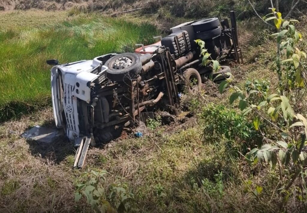 Segundo o Comando de Policiamento Rodoviário (CPRv), os dois veículos seguiam no mesmo sentido, em direção a Aperibé, quando um deles bateu na traseira do outro. Com o impacto, o caminhão da frente perdeu o controle, saiu da pista e tombou em uma área com lama e água.