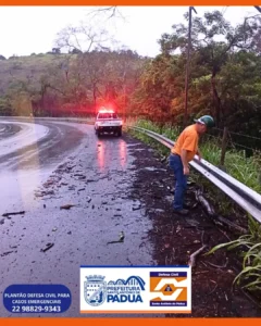 Defesa Civil de Pádua age após quedas de árvores na RJ-186