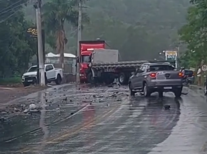 A colisão envolveu dois caminhões na RJ-186, na altura do Loteamento Ramos.