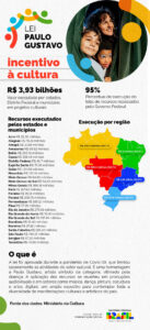 A LEI — A Lei Paulo Gustavo viabilizou o maior investimento direto no setor cultural da história do Brasil. Levando-se em consideração o valor disponibilizado, de R$ 3,86 bilhões e os rendimentos no fundo de investimento do Banco do Brasil, R$ 4,14 bilhões foram destinados à cultura. Símbolo de resistência da classe artística, a lei foi aprovada durante a pandemia de Covid-19, que limitou severamente as atividades do setor.